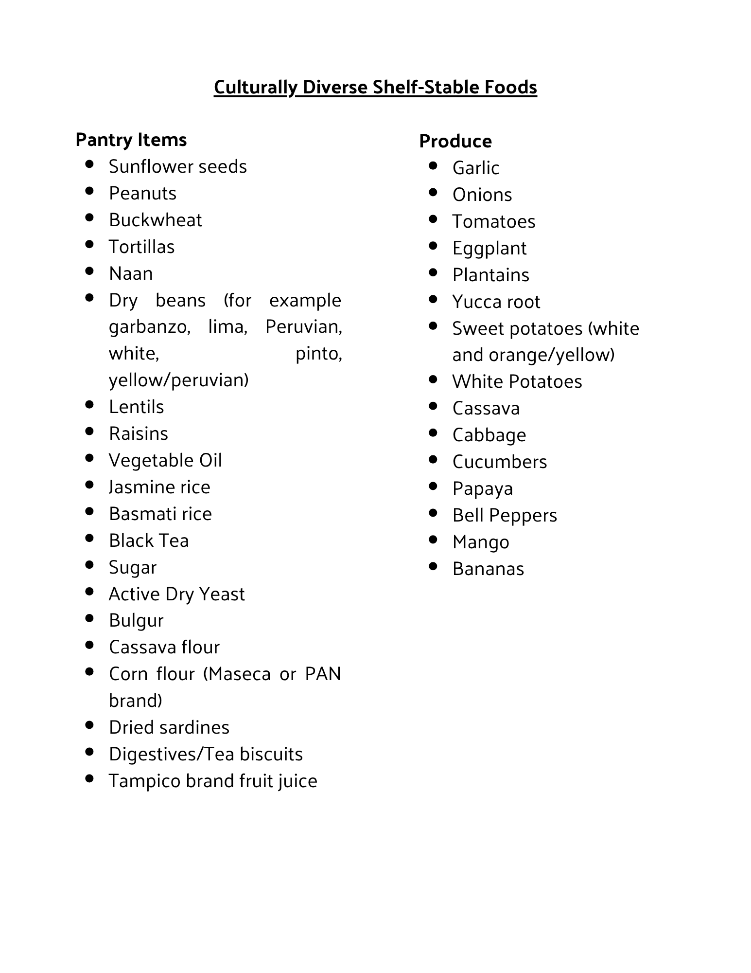 Food Donation Items